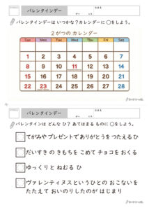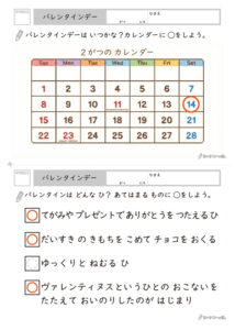 カレンダー問題では、「今日は2月のカレンダーだね。バレンタインは『2月14日』。