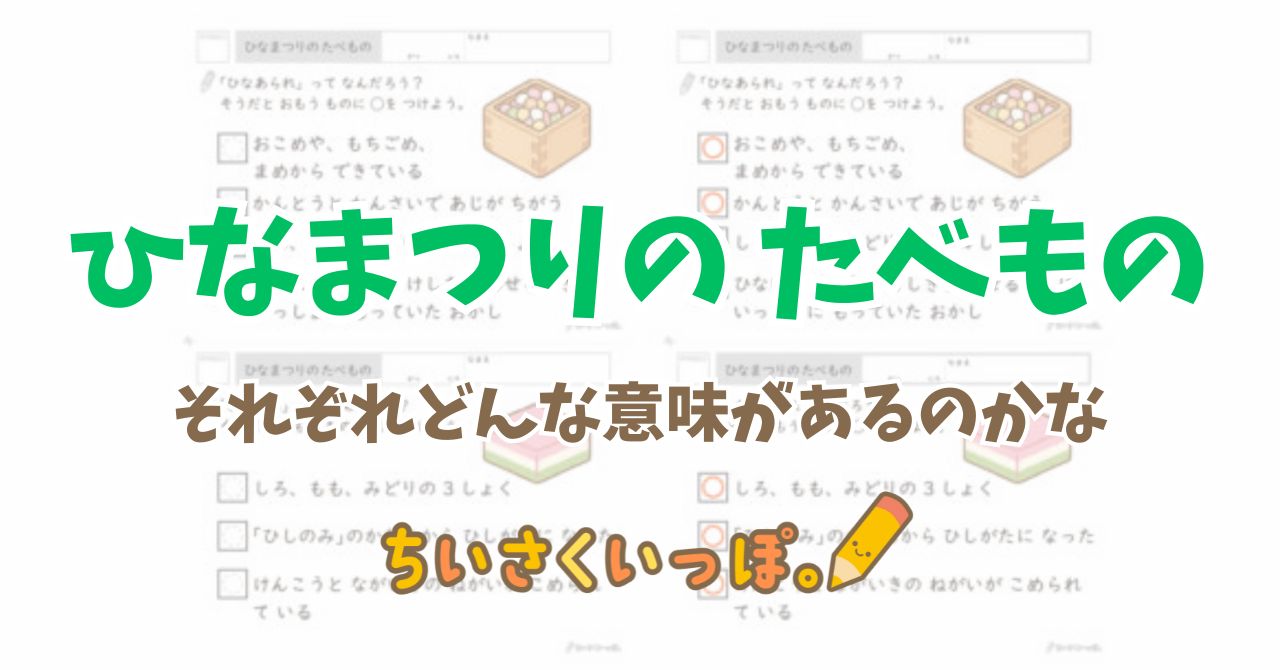 例えば、ひなあられの4つの色は「四季」を表していて、お雛様に素敵な景色を見せてあげるときに一緒に持っていったお菓子なんだよ、とお話ししてあげてください。ただの知識が、途端にキラキラした物語に変わります。