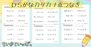 まったくわからない!という場合は、ひらがなカタカナ点つなぎのプリントから再チャレンジすることが、できた!への近道です。