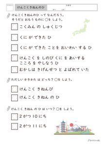 今回は、そんな難しい「祝日の意味」を、目で見える形に整理した学習プリントをご紹介します。