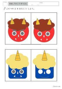 そこで今回は、もうすぐやってくる「節分」をテーマに、楽しみながら「見る力」をトレーニングできるプリントを作りました。